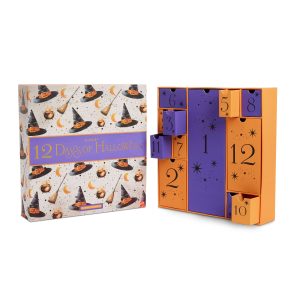 Lovers of this haunting season are in for plenty of tricks and treats with the Barbie Signature 12 Days of Halloween Doll and Accessories. This bewitching vintage-inspired doll is ready for a Halloween bash under the full moon. in a fabulous witch costume complete with a spiderweb lace skirt and magical accessories. As you count down to the big night. reveal frightfully festive extras. like Halloween décor. retro outfit embellishments. and a fierce catwoman costume your doll can wear as a second look.