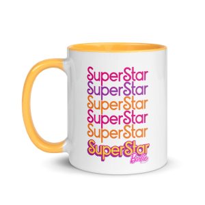 Add a splash of color to your morning coffee or tea ritual with this Barbie 1970s SuperStar Mug! These ceramic mugs not only have a beautiful design on them. but also a colorful rim. handle. and inside. so the mug is bound to spice up your mug rack. This exclusive Barbie design is only available through Mattel Creations.