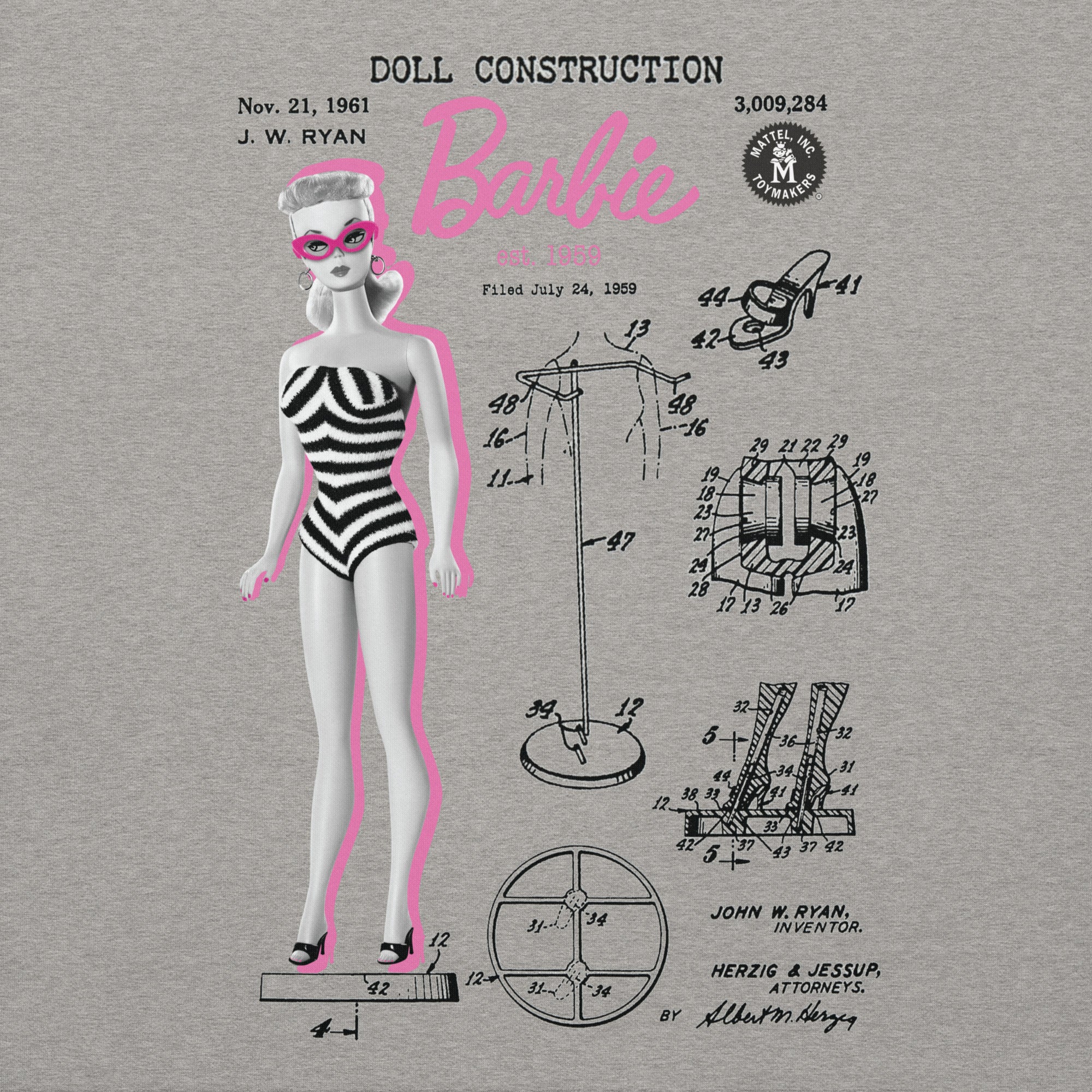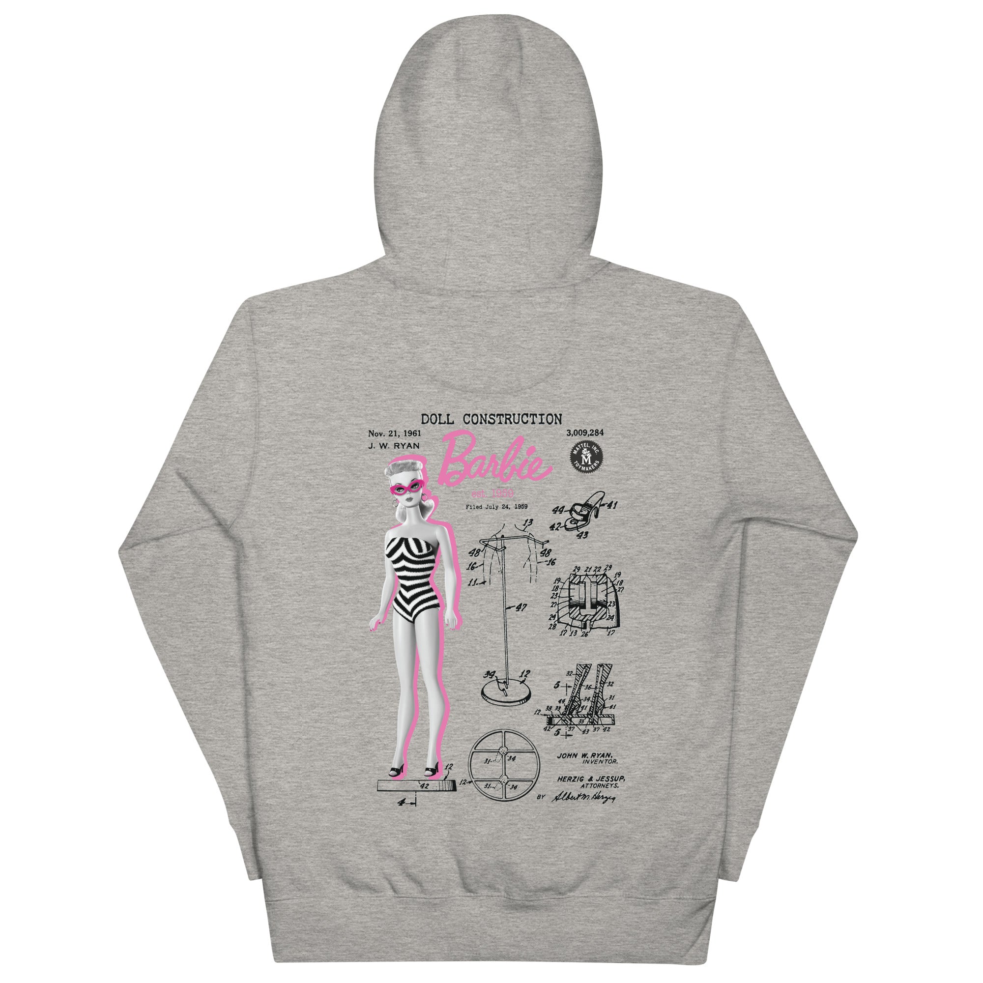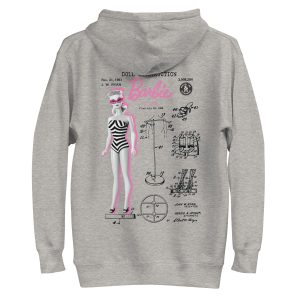 Layer up year round in this cozy. casual Barbie Doll Blueprint Grey Hoodie. With a front pocket and snug hood. it doesn’t get much better than this. This exclusive Barbie design is only available through Mattel Creations.