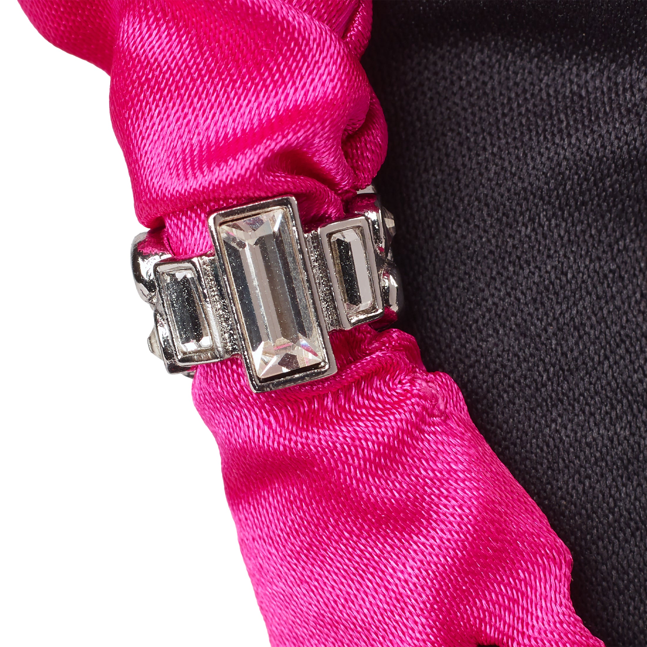 Elegance and sophistication are always in style. and this member-exclusive stunner is no exception. Celebrating the 65th anniversary of Barbie. our second Barbie Fashion Model Collection doll of 2024 is luminous wearing a black satin gown. ruffled with bright pink velvet. A matching pink taffeta petticoat. sheer black tights. and ankle strap stiletto heels enhance the silhouette. Glamorous accessories include dazzling gemstone jewelry and opera gloves.