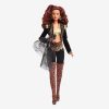Classic Barbie glamour meets on-trend fashions in the stunning Barbie Pink Collection. Our fourth doll makes a bold statement in a dramatic. high-low taffeta gown. accentuated by a sweetheart neckline with pleats and shirring details. matching belt. and a sweeping train. The gown’s stunning silhouette showcases glitzy. embroidered pink and silvery jewel-toned. over-the-knee boots. Barbie doll’s hair is styled in a pulled-back afro ponytail and framed by shimmering rhinestone drop earrings.
