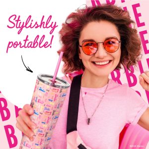 For On-the-Go Barbie™ Fans: Keeps drinks hot or cold for hours. Great for coffee or iced tea enjoyment. Designed to fit in standard cup holders. making it ideal for road trips. workouts. office hours or leisurely strolls