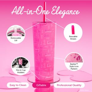 For On-the-Go Barbie™ Fans: Keeps drinks hot or cold for hours. Great for coffee or iced tea enjoyment. Designed to fit in standard cup holders. making it ideal for road trips. workouts. office hours or leisurely strolls
