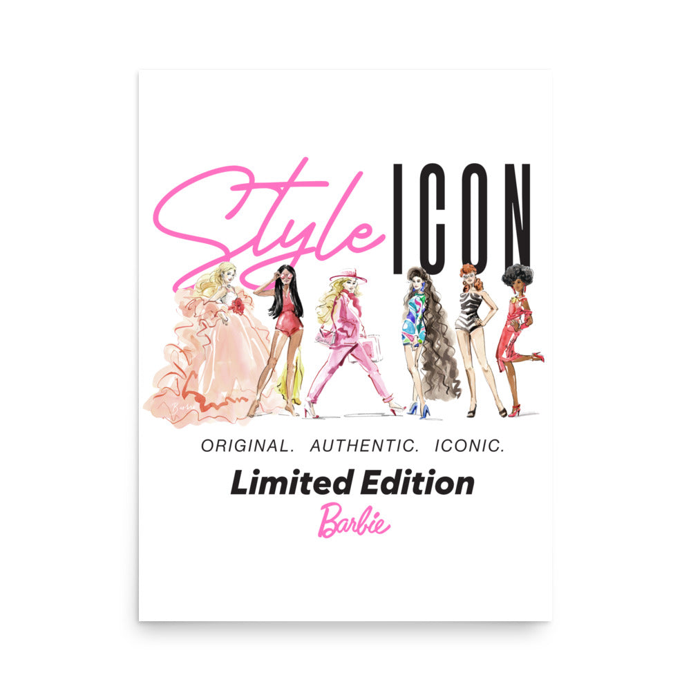 This Barbie Style Icon White Poster has a partly glossy. partly matte finish and it’ll add a touch of sophistication to any room. This exclusive Barbie design is only available through Mattel Creations.