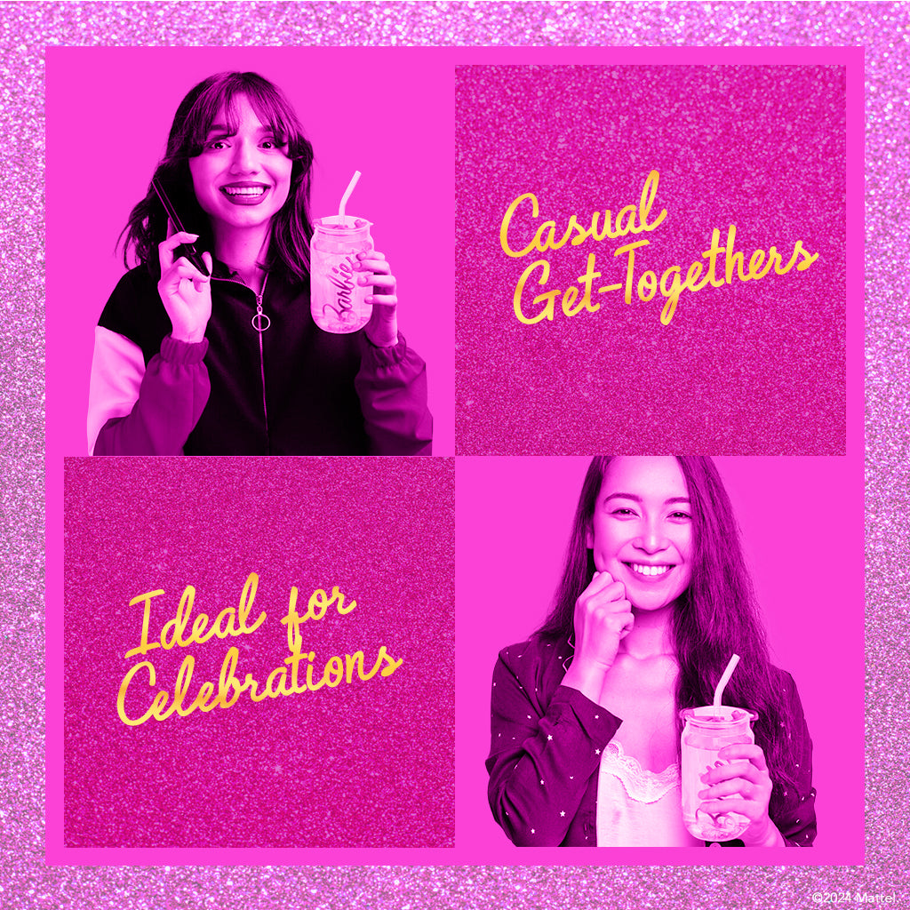 Officially Licensed Barbie™ Drinkware: Sip in style with officially licensed Barbie™ drinking glasses. These cute glass cups with lids and straws feature the iconic Barbie™ logo you know and love