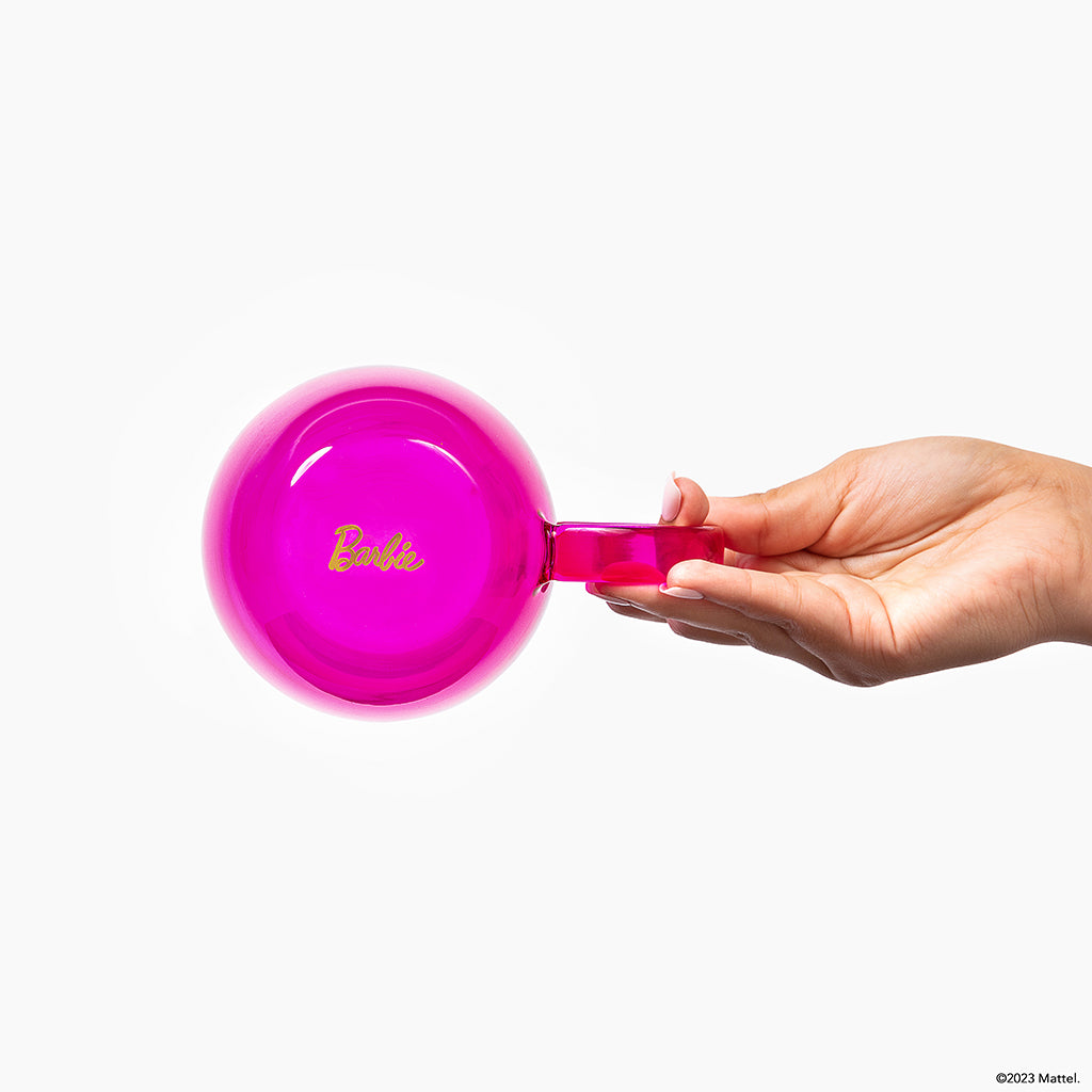 Double Wall Coffee Mug Set: These stunning coffee glass cups feature iconic Barbie™ colors and style to give you the ultimate Barbie™ experience at home; comes with one pink and one magenta mug embellished with signature Barbie™ branding on the base