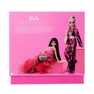 In this virtual-meets-physical-world-collaboration. noonoouri and Barbie doll are captured in a moment of transformation. noonoouri appears in her pixelated universe. As she reaches through the portal to her friend. she suddenly becomes an exquisite doll version of herself. At the same time. Barbie doll enters noonoouri’s orbit and evolves into the form of a virtual avatar. Both dolls feature unique face sculpts with full inset eyes and posable bodies.