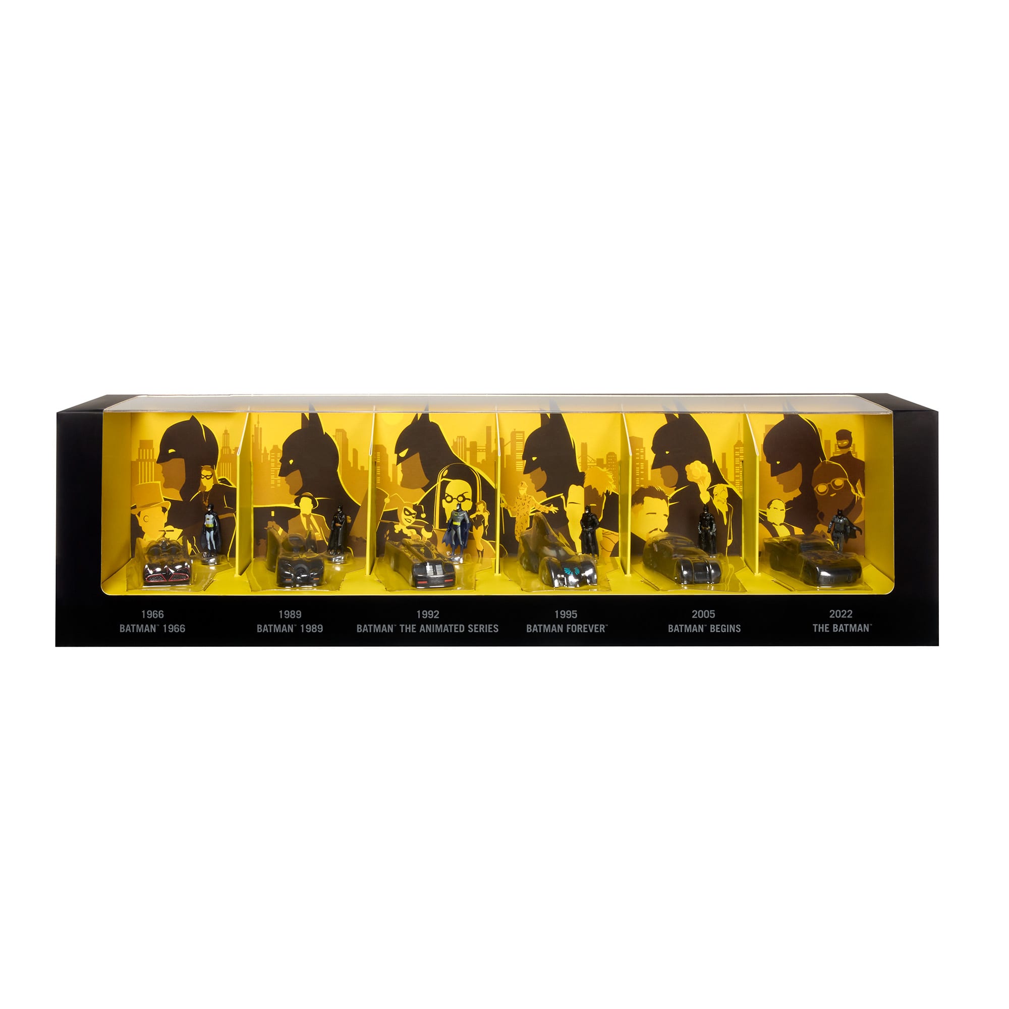 - Includes six different versions of the Batmobile™ from film. TV. and animation
