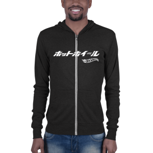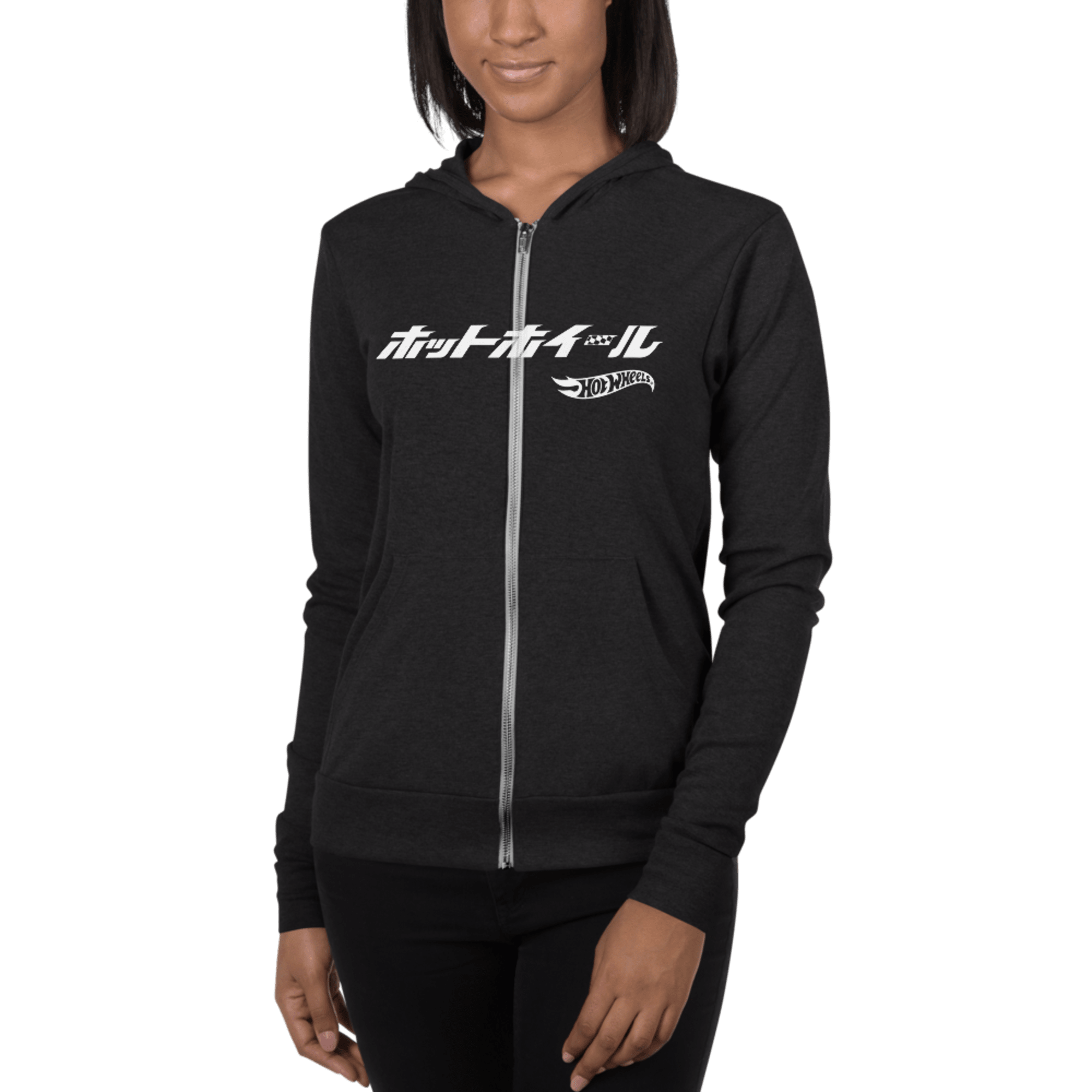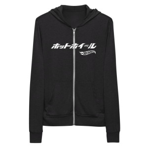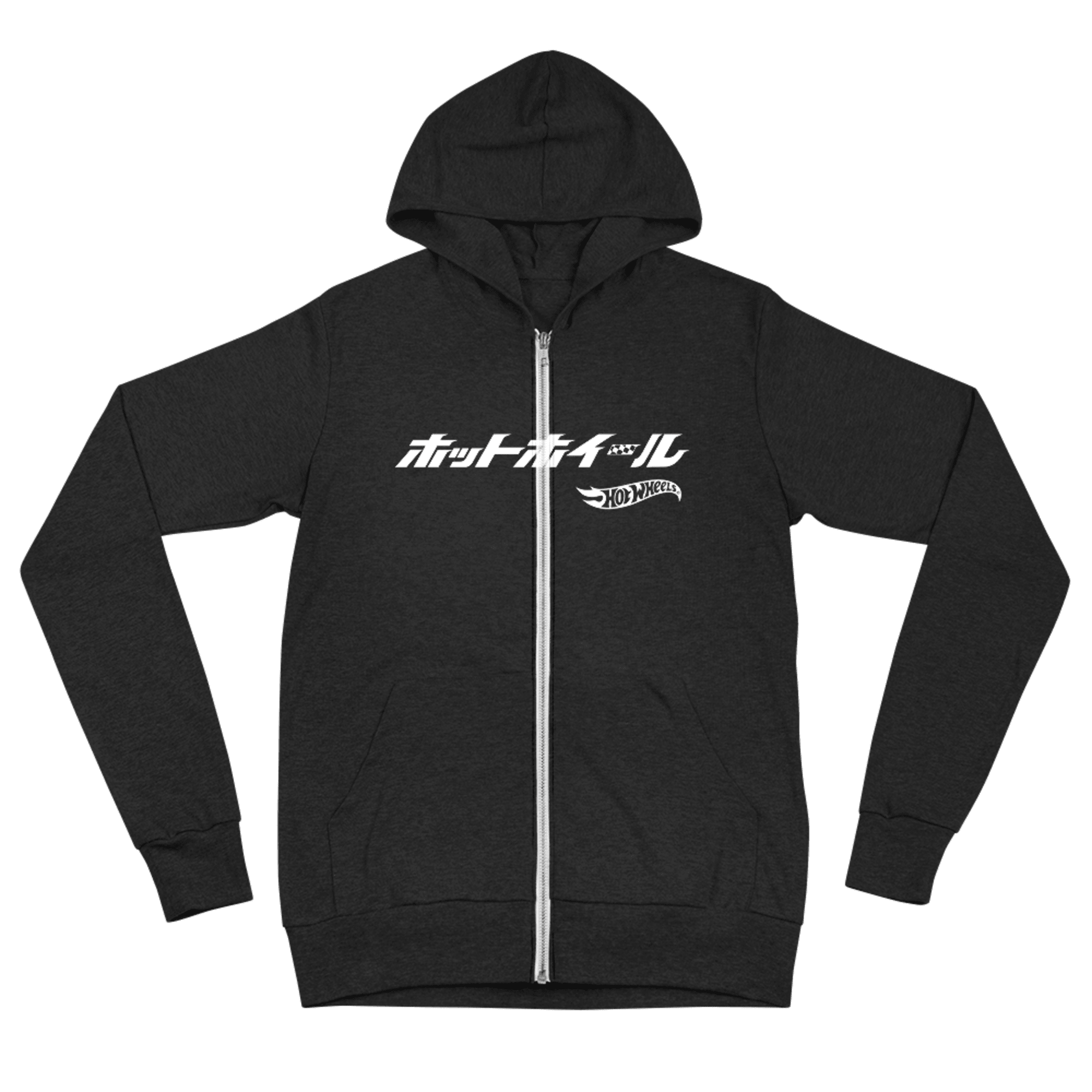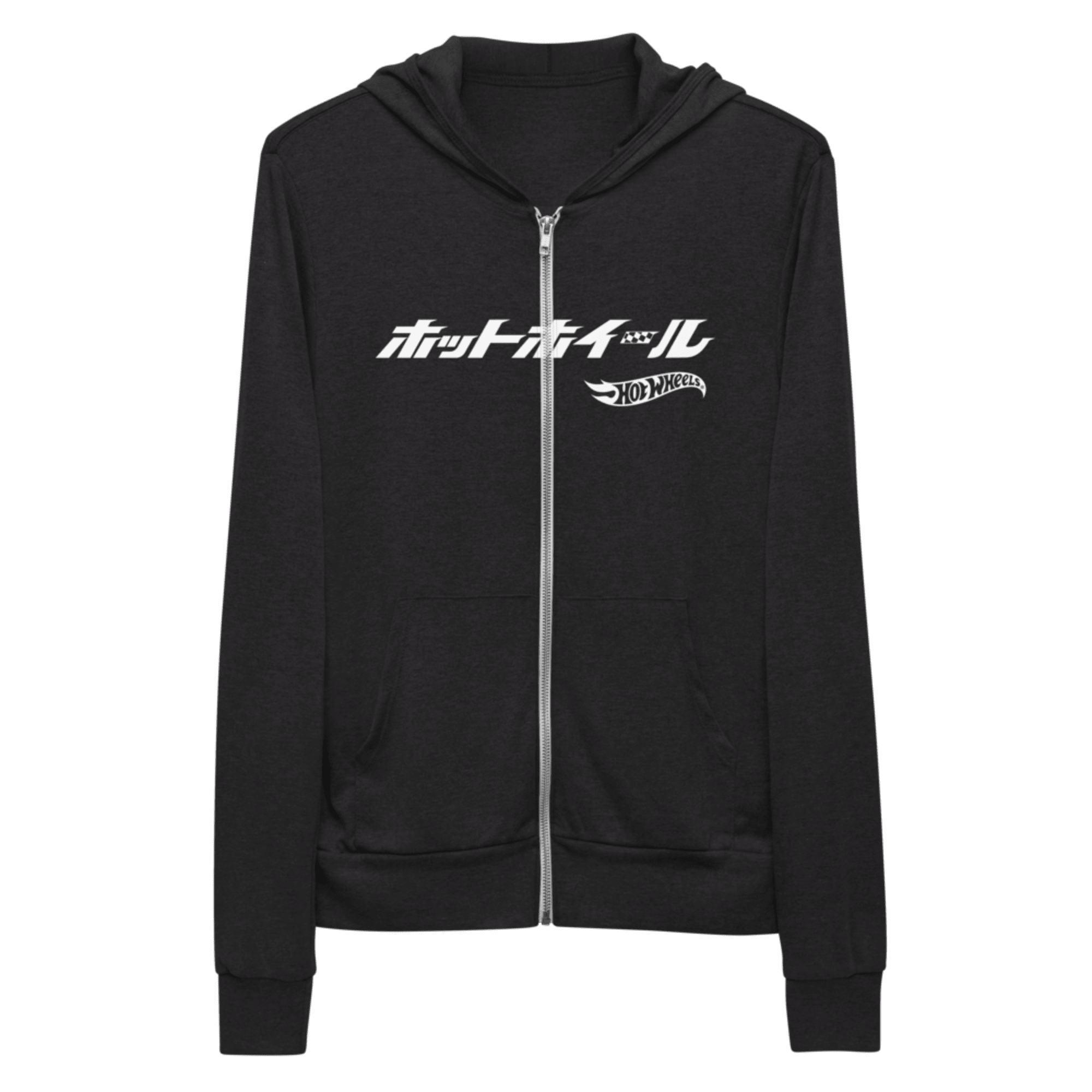 This zip hoodie includes the Hot Wheels® Japanese logo printed on the chest with a smaller Hot Wheels® core logo printed below.