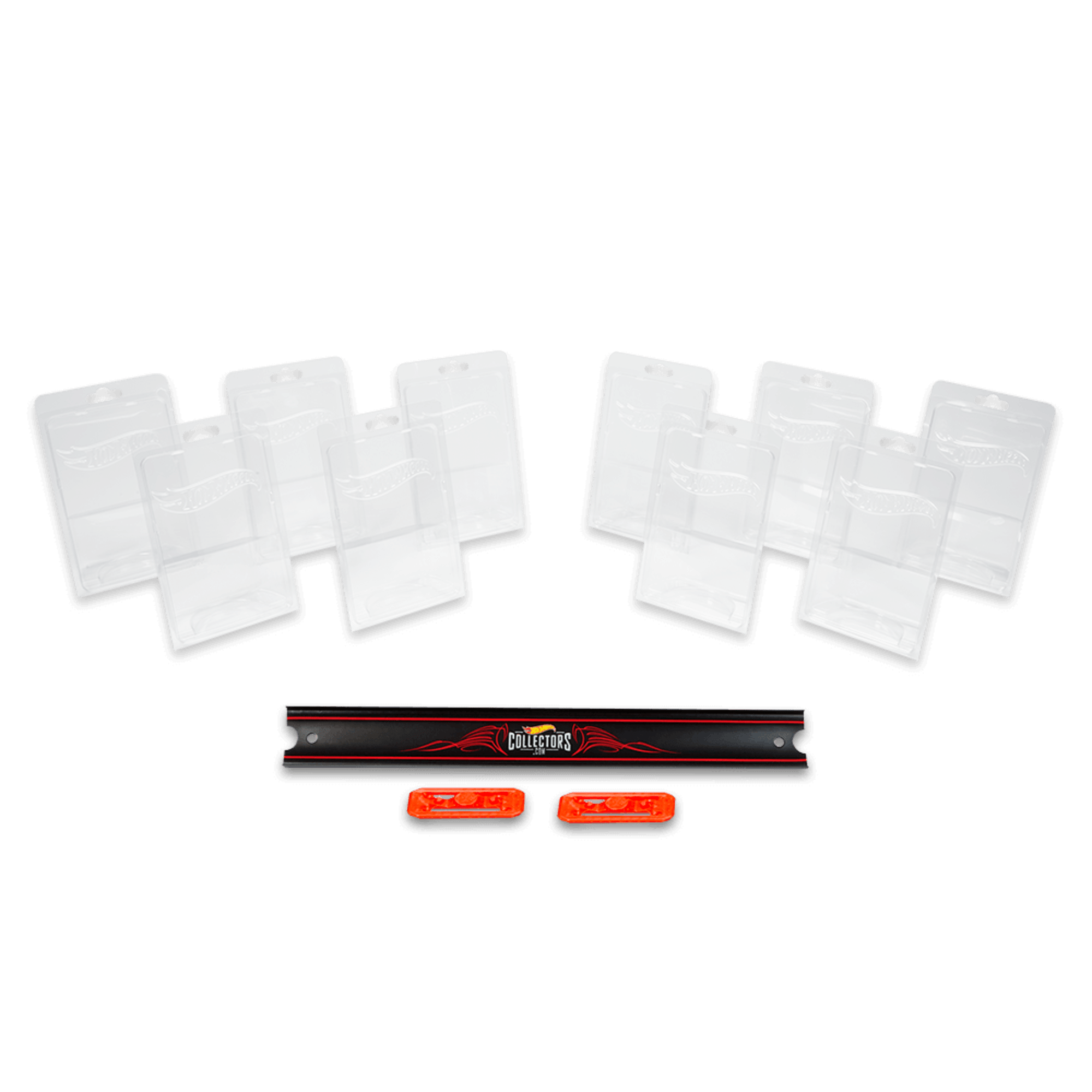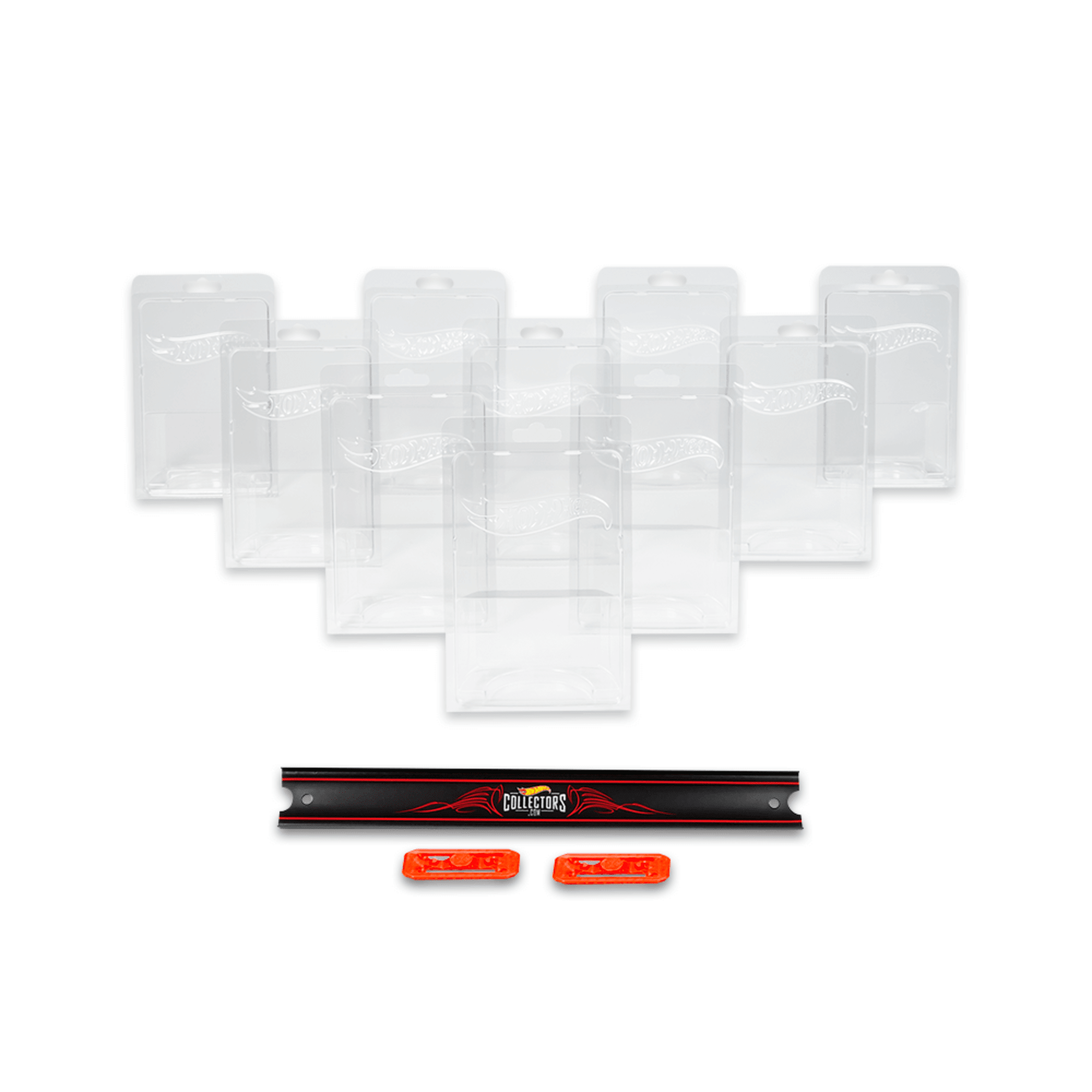 Because you demanded it! What’s the way to keep your collection in pristine shape when you want to keep them on the blister cards? Our Kar Keepers clamshell cases. of course! Plus. in this kit we’ve included a length of exclusive Hot Wheels Collectors Track with two connectors!