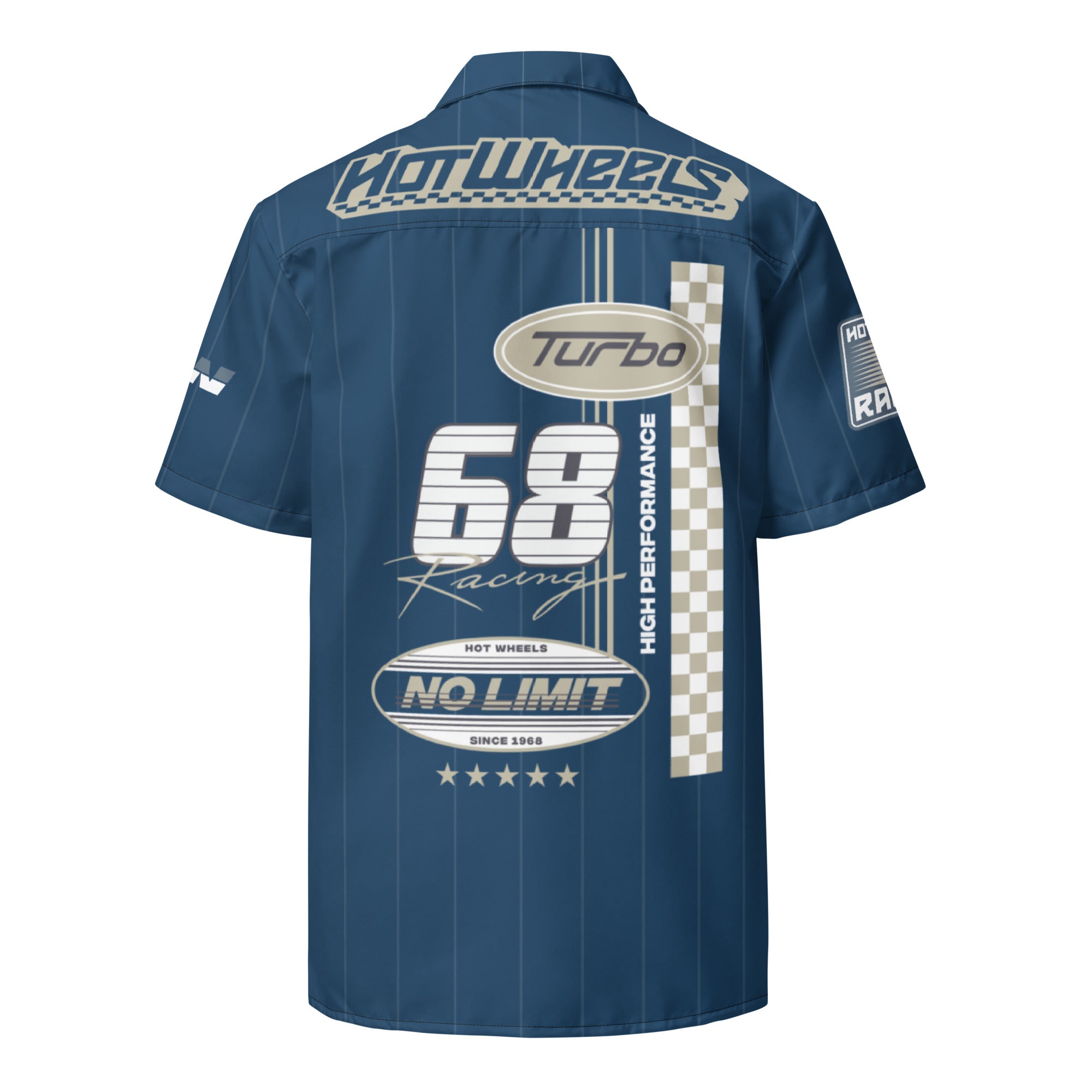 The Hot Wheels Racing Blue Striped Mechanic Shirt exudes coolness both in terms of style and material. Plus. its featherlight and moisture-wicking material ensures comfort even on the hottest days. This exclusive Hot Wheels design is only available through Mattel Creations. This exclusive Hot Wheels design is only available through Mattel Creations.