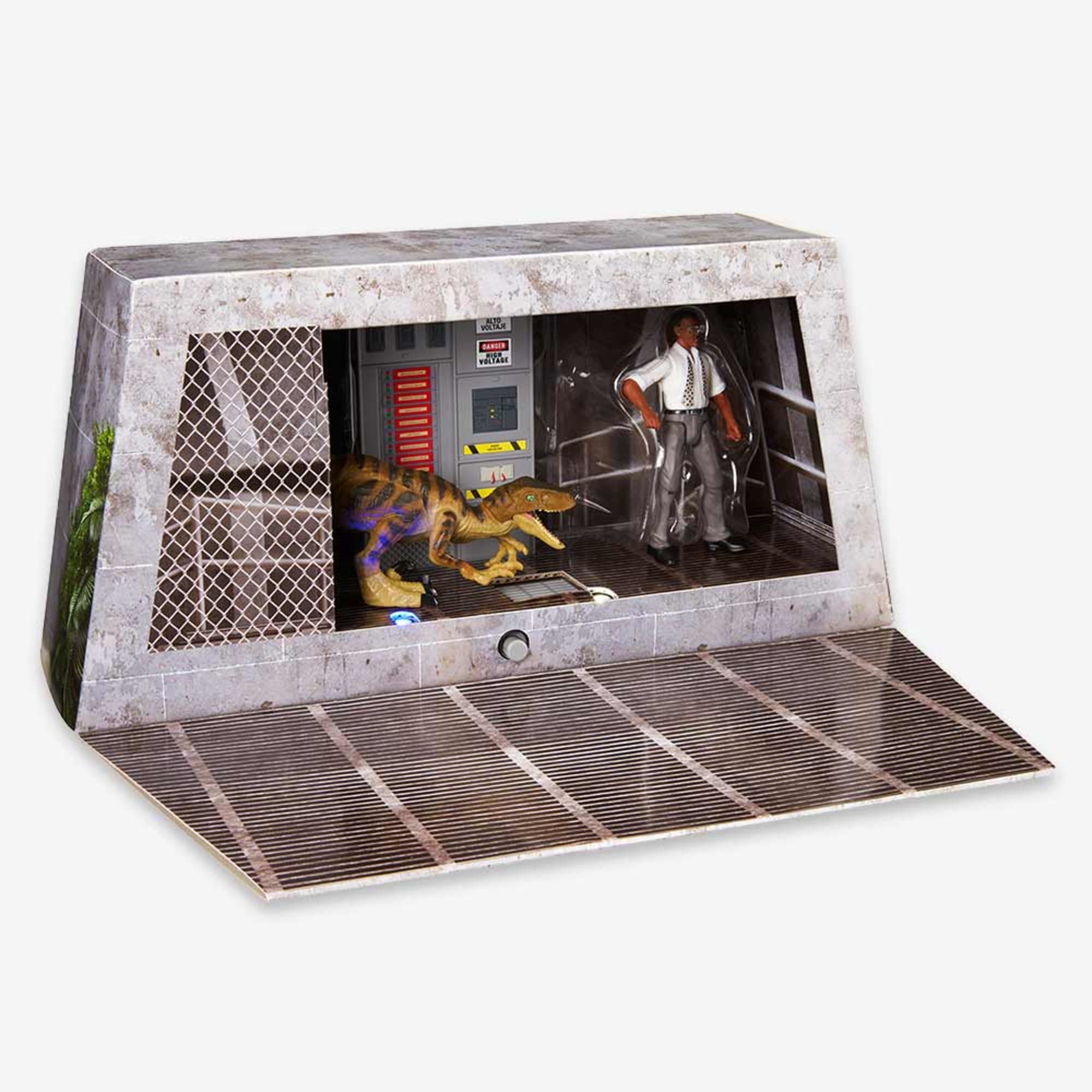 Fans would give their right arm for this special collector pack. It imagines the memorable moment viewers never got to see in the Jurassic Park movie — as Chief Engineer John Raymond ‘Ray’ Arnold heroically heads to the maintenance shed to reboot the power. Capturing this tragic moment that lives only in the imagination. the pack includes a highly posable 3.75-inch (9.5-cm) action figure of Arnold with removable arm within the maintenance shed setting. The 2.4-inch (6.1-cm-cm) tall and 7-inch (17.8-cm) long ferocious-looking Velociraptor figure reminds us how Arnold dies. losing his arm in the process. Sounds and lights heighten the suspense and even the packaging reflects the authentic setting of the scene. Makes a great gift for collectors. especially Jurassic Park fans! Colors and decorations may vary. ©2026 Mattel © Universal City Studios LLC and Amblin Entertainment. Inc. All Rights Reserved.