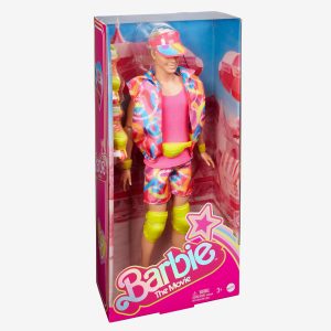 This collectible Ken doll is a skating machine in a retro-inspired outfit. He wears a hot pink tee and colorful matching accessory set complete with a visor. knee pads. and neon Impala inline skates. Inspired by Ken’s character in the feature film. he’s ready to roll alongside Barbie for a fun day in the sunshine.