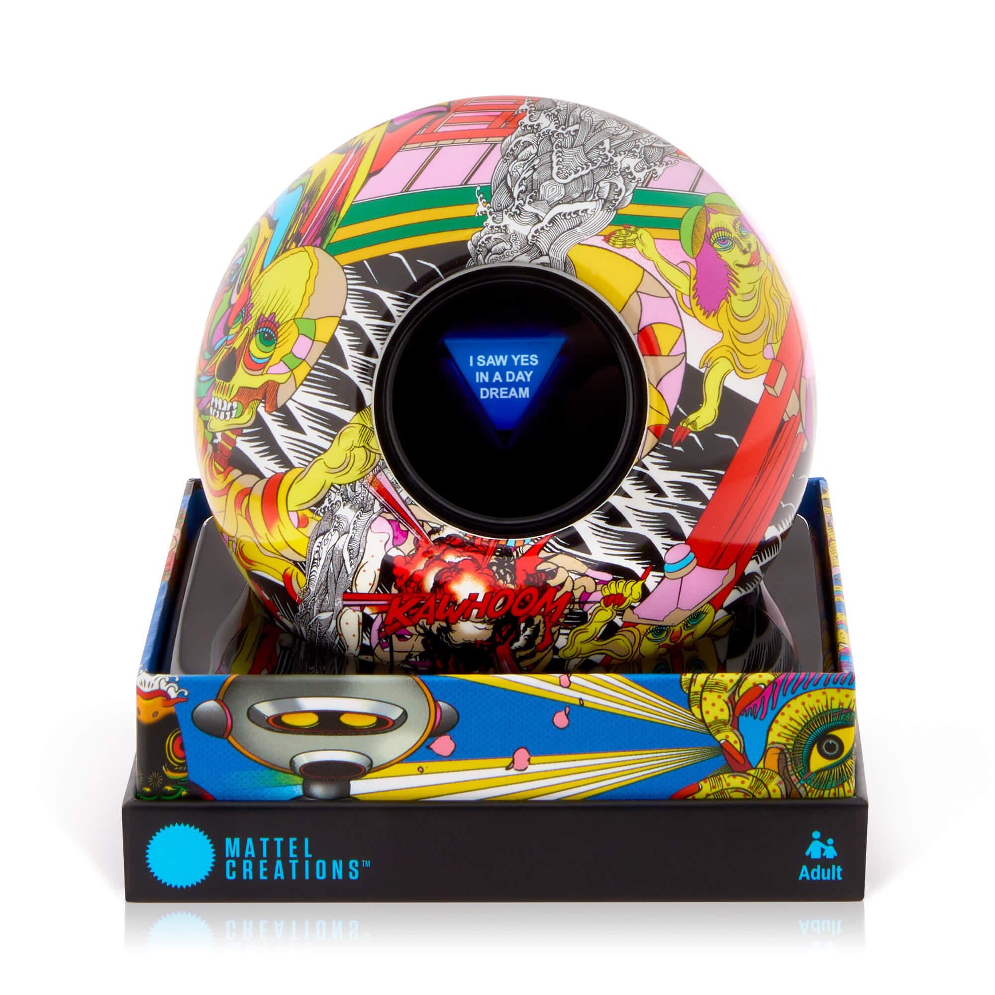 Our Magic 8-Ball fuses the pop artist’s enigmatic style with fortune-telling. It features an overlay of Tanaami’s vibrant artwork on the body of the ball and includes a custom floater with inspired answers from the artist.
