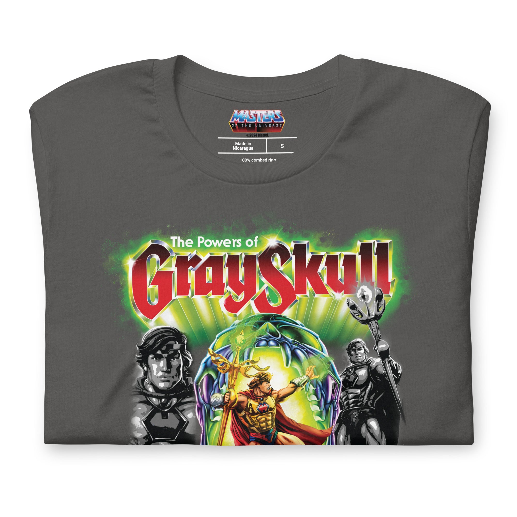 This Masters of the Universe He-Ro Grey T-Shirt is everything you’ve dreamed of and more. It feels soft and lightweight. with the right amount of stretch. It’s comfortable and flattering for all. This exclusive MOTU design is only available through Mattel Creations.