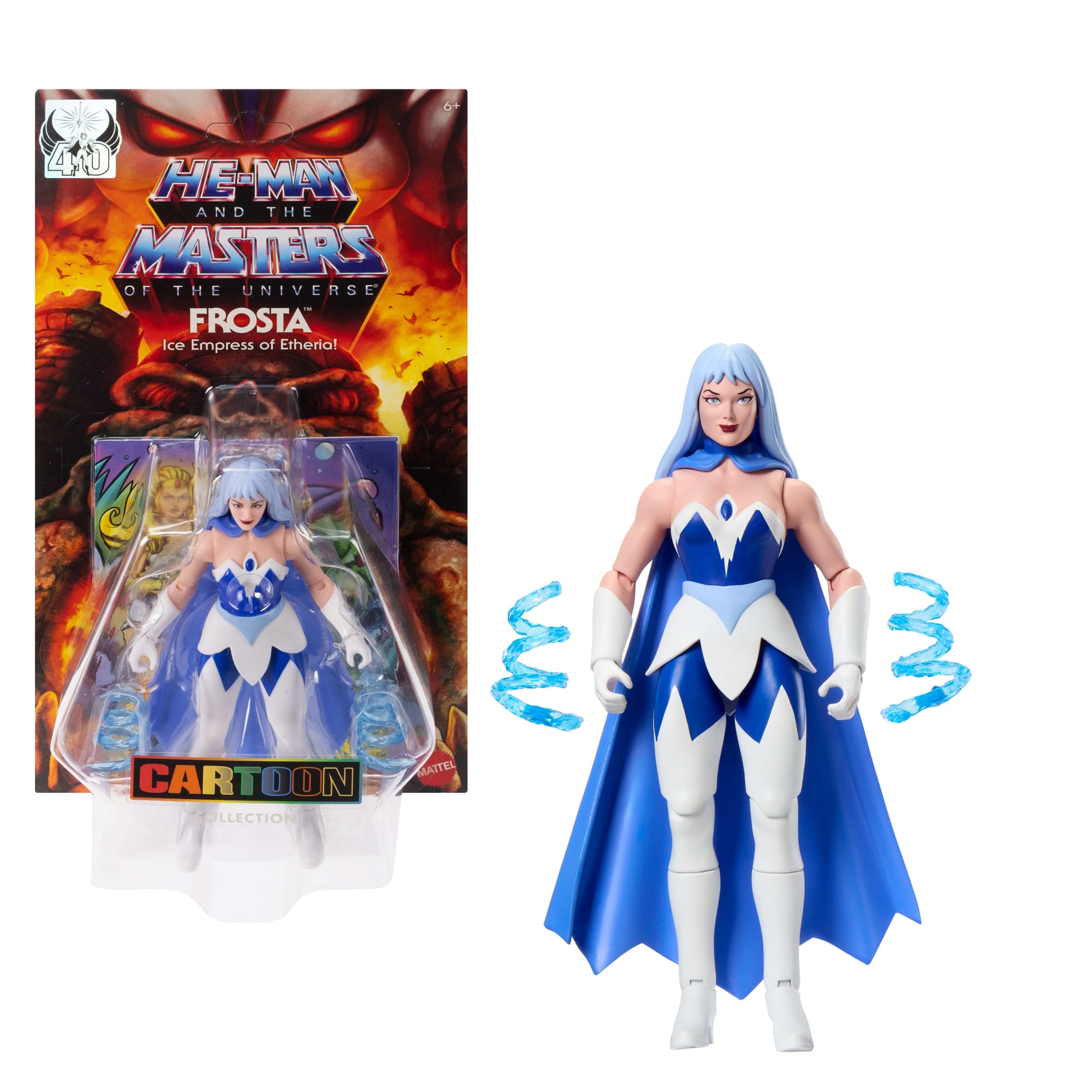 - This Masters of the Universe Origins Cartoon Collection Frosta action figure celebrates the 40th Anniversary of She-Ra: Princess of Power and will bring back fond memories of the 1980s TV series.