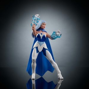 This Masters of the Universe Origins Frosta action figure from the Cartoon Collection is inspired by the original She-Ra: Princess of Power TV series from the ’80s and celebrates the 40th anniversary of the show! This MOTU toy of the young royal from the Kingdom of Snows has a vintage look but is designed at 5.5-inch scale with the modern posability of 16 movable joints. She comes dressed in a jeweled uniform with removable cape and has two translucent ‘icy’ arm spirals. representing her ability to manipulate snow and ice. Her appearance and ice spirals are inspired by the ‘Black Snow’ episode. A mini-comic is included for story context. Colors and decorations may vary.