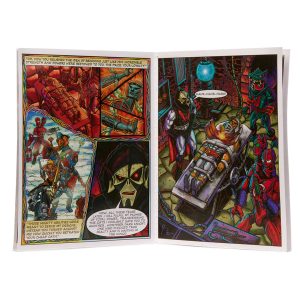 - Comes with a folding shield and a mini comic