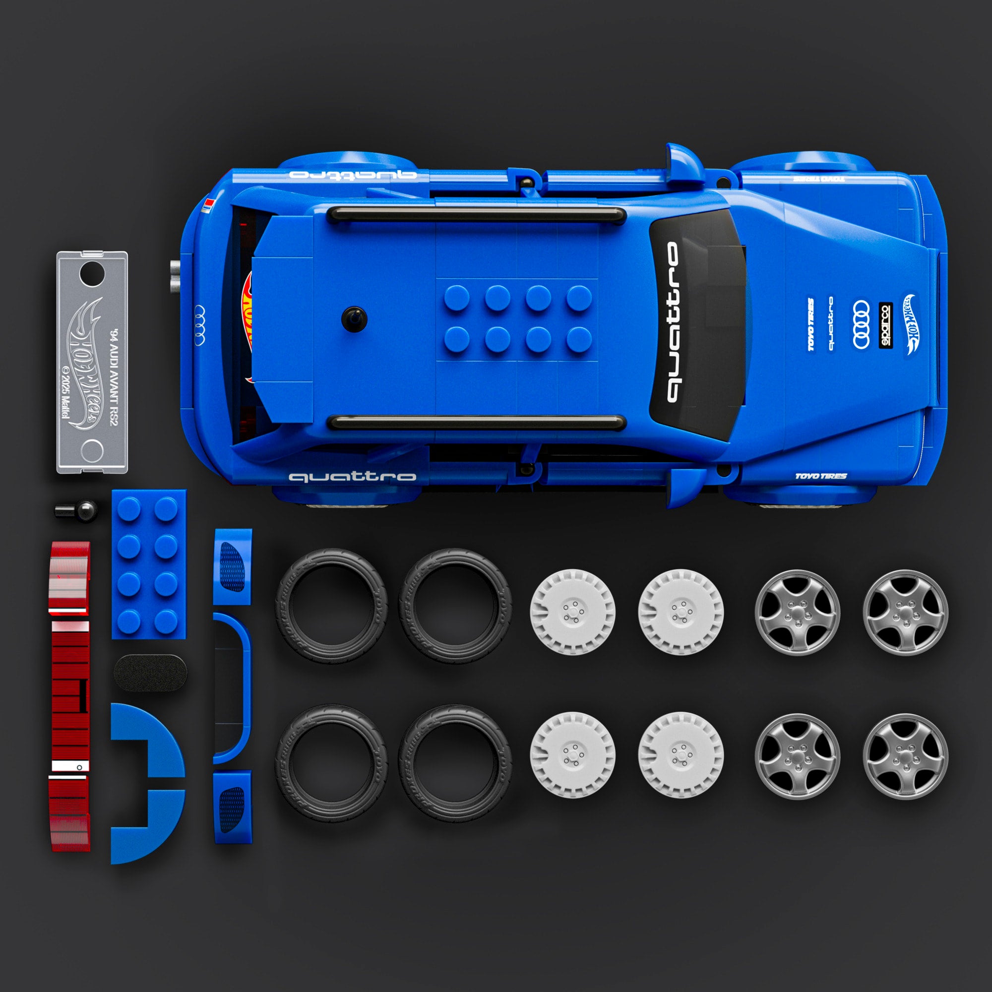 Shift into high gear with the buildable 1:32 scale Audi Avant RS2 by Mattel Brick Shop. This detailed and authentic set includes decals for customization. 2 sets of wheel covers. a metal signature plate. plus an exclusive matching metal car. Collect all the cars in the Speed Series⢠and build your collection.