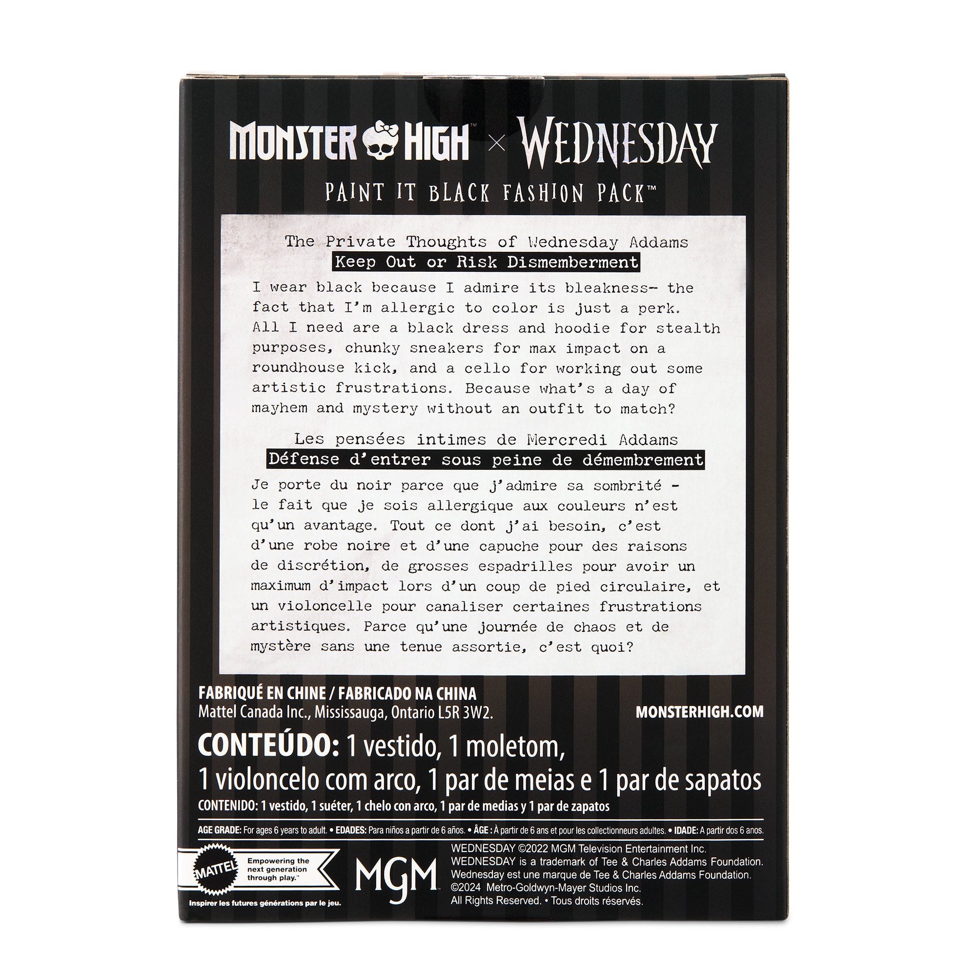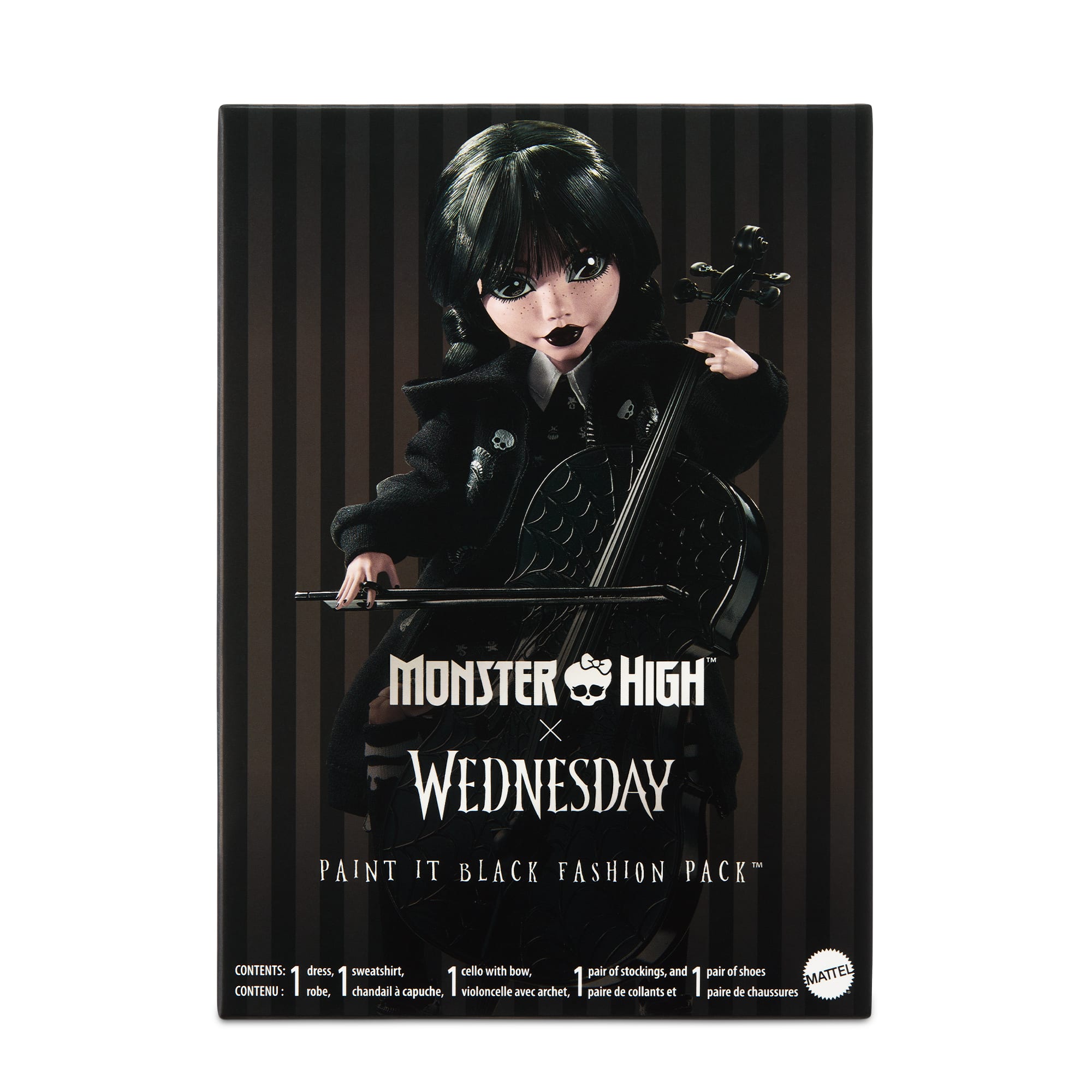 Channeling the funereal fashion sense of Wednesday Addams. the Paint It Black Fashion Pack is a Mattel Creations exclusive that offers a complete. curated look for any Monster High x Wednesday Collection Wednesday doll. These pieces are perfect for when she’s looking to change up her #OOTD (Oddly Obscure Torture Devices).