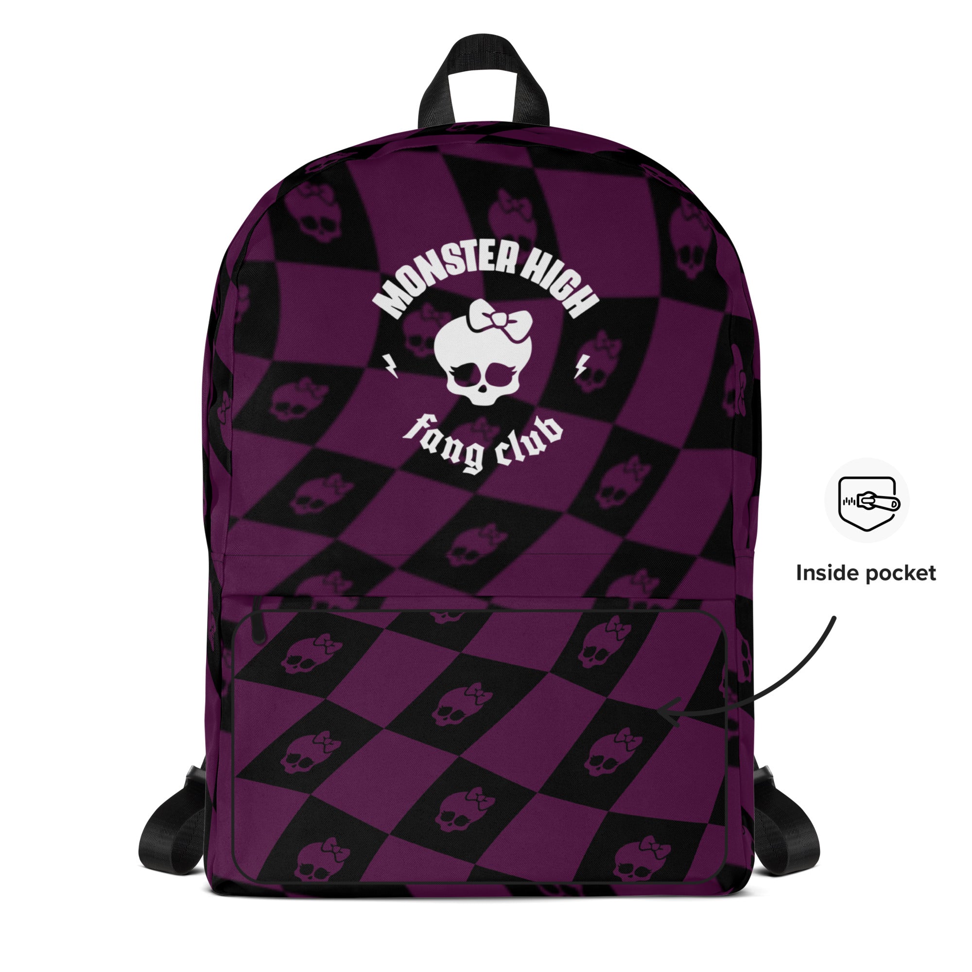 Whether you’re headed to a biteology class or packing your gear for a casket-ball game. our member-exclusive backpack has plenty of room for everything you need. (Not a member? You can join Fang Club and grab this creeptastic backpack at the same time.) Its water-resistant material will help protect your stuff from the weather. and it features a spooktacular skullette checkerboard design along with the Monster High Fang Club logo.
