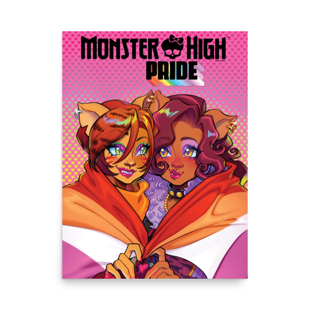 This Monster High Pride Toralei & Clawdeen Pink Poster has a partly glossy. partly matte finish and it’ll add a touch of sophistication to any room. This exclusive Monster High design is only available through Mattel Creations.