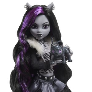 At Monster High it’s time for Frights. Camera. Drama! An ode to classic black and white horror films. the Reel Drama collection gives the original Monster High cast a dramatic and cinematic twist. Clawdeen Wolf doll remains the clawesome star she always has been. accompanied by her pet cat Crescent figure and two eye-catching graphic movie posters — one mini. and one life-size! With head-turning packaging perfect for this chilling capsule collection. Clawdeen Wolf doll never looked so gore-geous. Fully articulated. Doll cannot stand alone. Colors and decorations may vary.