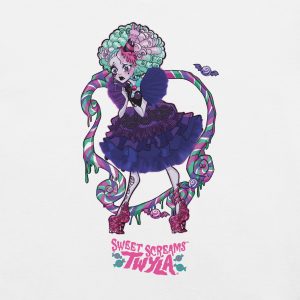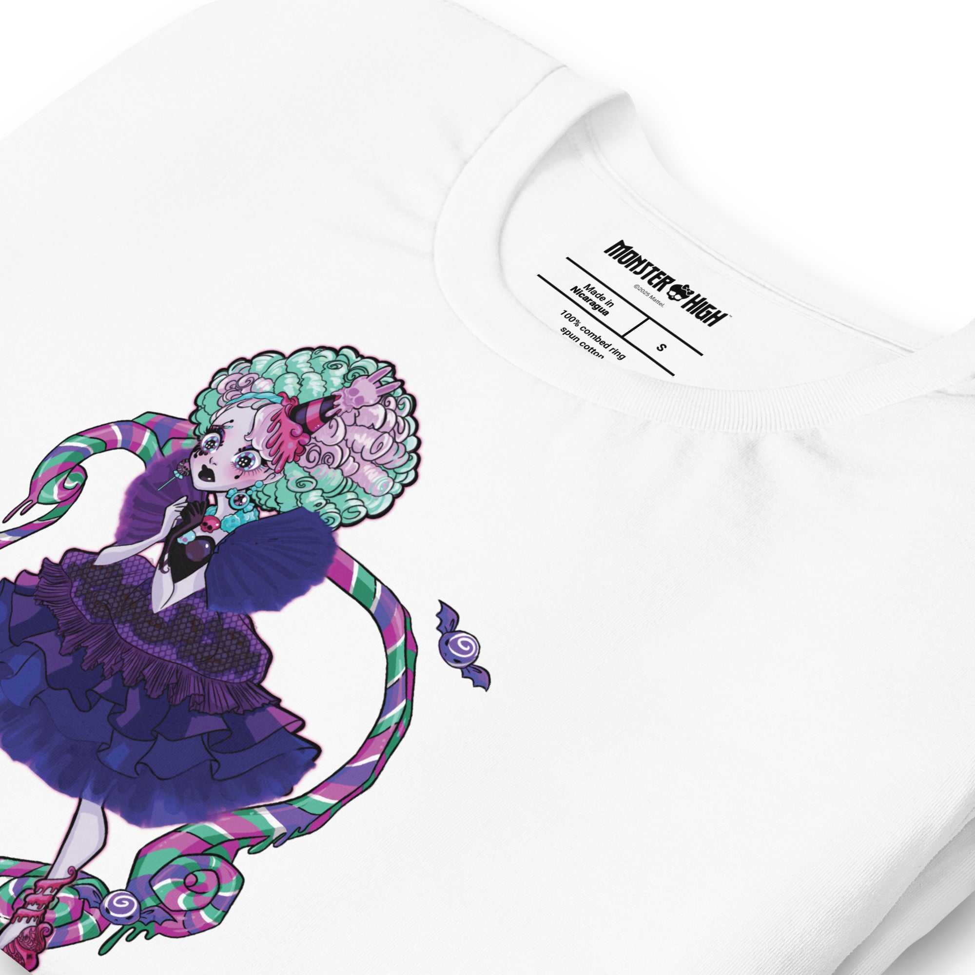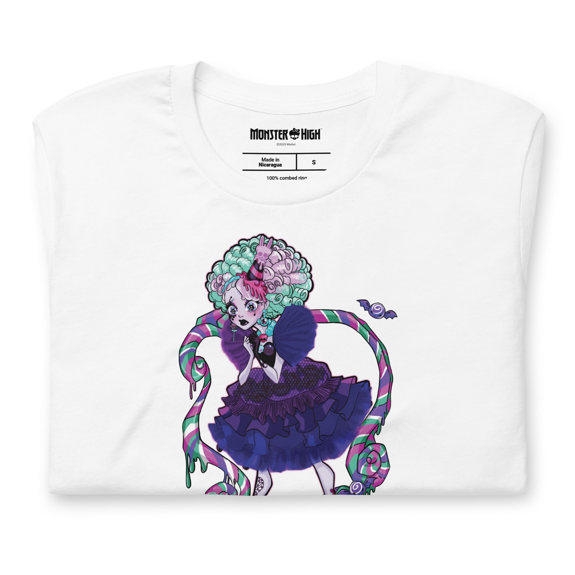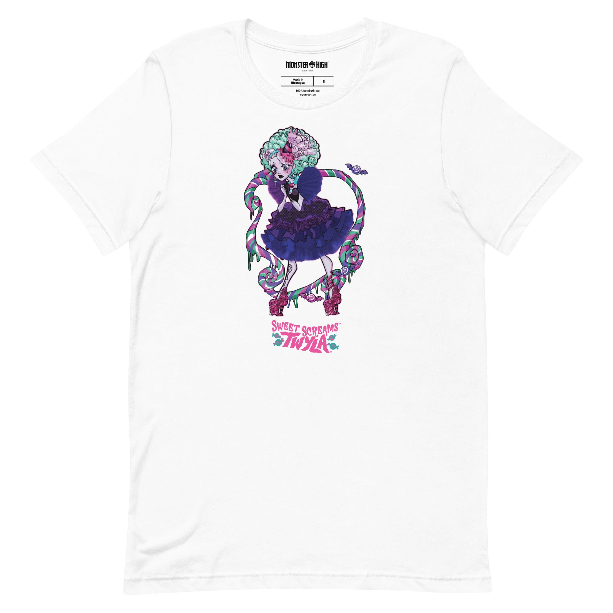 This Monster High Sweet Scream Twyla White T-Shirt is everything you’ve dreamed of and more. It feels soft and lightweight. with the right amount of stretch. It’s comfortable and flattering for all. This exclusive Monster High design is only available through Mattel Creations.