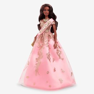 This collectible doll is inspired by President Barbie in Barbie The Movie. She looks absolutely radiant in her gorgeous presidential gown. A multi-layered skirt. sparkling gold accents. and satiny sash add beautiful detail to her cinematic look. Celebrating Barbie The Movie. this doll makes a great gift for fans and collectors alike.