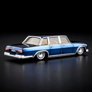 Once reserved for royals. celebrities. and billionaires. the original Mercedes-Benz 600 Pullman limousine represented peak power and luxury. Our designers took inspiration from the Japanese VIP style of car customization and created this slammed-stance version which features. for the first time in Hot Wheels history. four conventional opening die-cast doors. They reveal an epically detailed and upgraded interior. with diamond-patterned seating and backseat cocktail service.