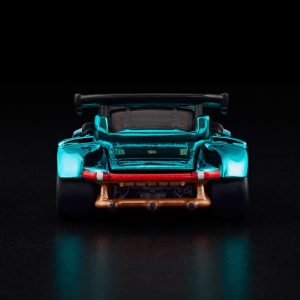 Every Porsche master customizer Akira Nakai works on with RAUH-Welt Begriff is unique. In that spirit. this Hot Wheels Collectors version of the Porsche 930 is vastly different from its predecessors. Made from a casting used only once in 2020. our collectible features stunning Spectraflame teal paint that blends seamlessly with metallic gold color RWB graphics — plus Real Riders wheels with silvery foil lips. It may be a long time again before this masterpiece returns. so race to get yours now.