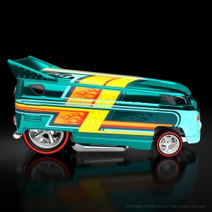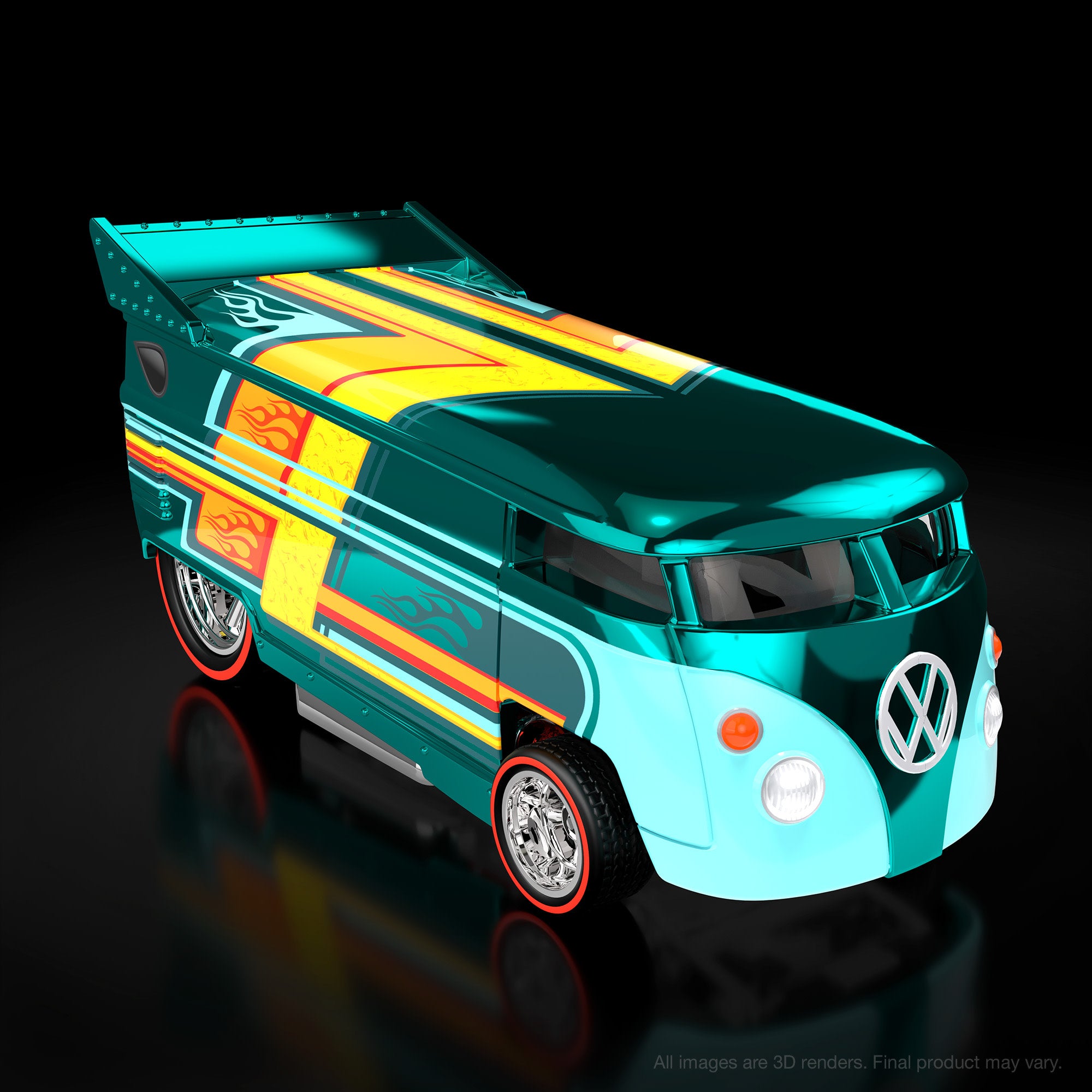 The votes are in! The Volkswagen Drag Bus. a Hot Wheels diecast since 1996. takes a victory lap as our first sELECTIONs winner of 2024. In addition to the casting. RLC members chose Spectraflame teal for the body and Real Riders 5-spoke mag wheels for the front and rear. The smoke-tinted windows. tilt-open body. and chrome-plated engine are the crowning touches. Reserve a special spot in your sELECTIONs collection for this ride’s triumphant return.