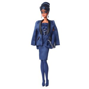 Commemorate 65 years of Barbie with a glamorous doll that also heralds the return of the beloved BFMC (Barbie Fashion Model Collection) series. To symbolize her anniversary milestone. she sports a sapphire-inspired ensemble. including jewel-toned jacket and midi dress with dazzling gemstone earrings. Her elegant opera gloves. evening handbag. and stiletto boots complete the celebratory look. A fitting tribute to an extraordinary legacy!