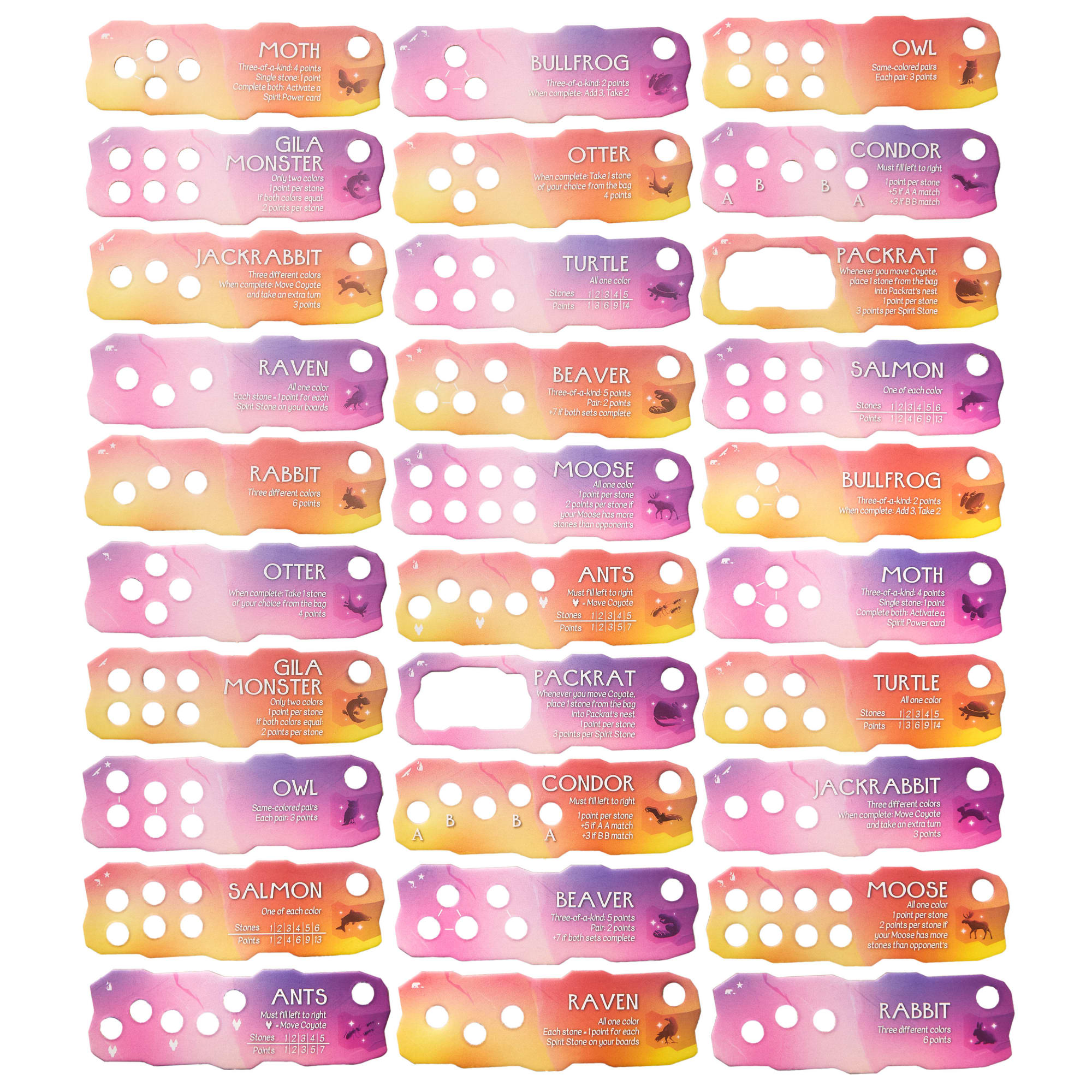 - Watch out for Coyote! When he is on a player board. no more stones can be given to that animal.