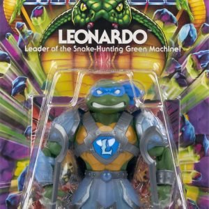 The Teenage Mutant Ninja Turtles scour Eternia for Shredder. but find themselves in the middle of King Hiss’ plot to make the Snake Men the most powerful force in the Universe. Although still recognizable. this Leonardo action figure has a fierce expression and glowing eyes and is geared up with Reptile Wars armor and weaponry. Our snake-wrangling Leo comes with a removable shell that doubles as a shield. and special swords with capture hooks.