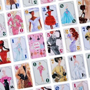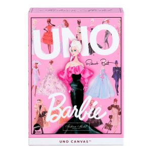 UNO Canvas Barbie puts a spotlight on the beloved Barbie Fashion Model Collection (BFMC). Renowned fashion designer Robert Best opened his sketchbook to share original artwork from the acclaimed series. just in time to celebrate Barbie’s 65th anniversary. Each amazing sketch depicts a unique creation that became one of the beautifully crafted Silkstone dolls of the collection. and you can enjoy his glamorous illustrations as you play the game you love.